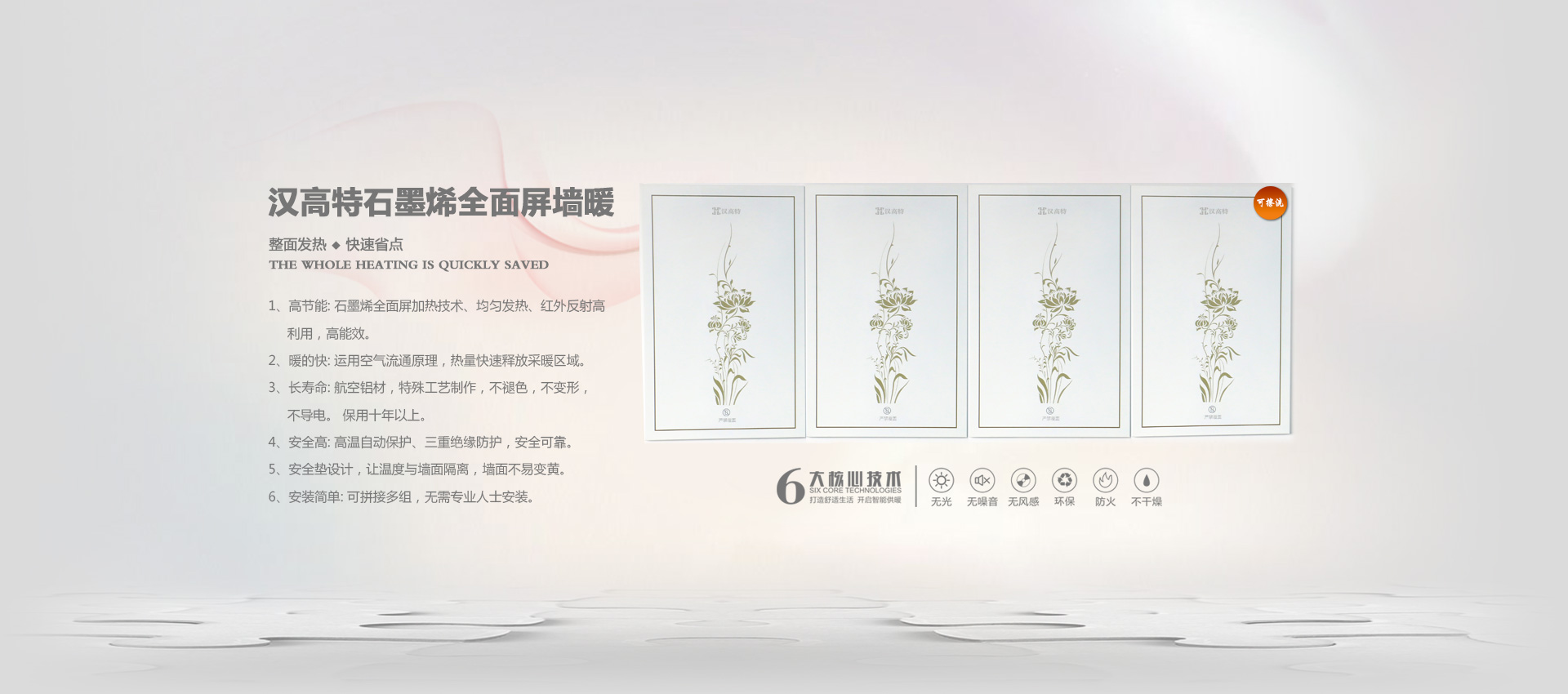 漢高特自主研發(fā)的新型石墨烯電地暖、石墨烯電采暖、電熱膜電地暖、碳纖維電暖、碳晶墻暖畫、電地暖廠家加盟、電熱膜工廠,采用新設(shè)計、新材料在行業(yè)內(nèi)首創(chuàng)了耐強(qiáng)酸、耐強(qiáng)堿、防火阻燃、防水防潮等特點(diǎn)。產(chǎn)品暢銷江蘇、四川、甘肅、山西、河北、河南、內(nèi)蒙、新疆等地。